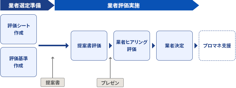 +αのご支援として、業者選定後の導入以降のプロマネ支援もご用意しています。