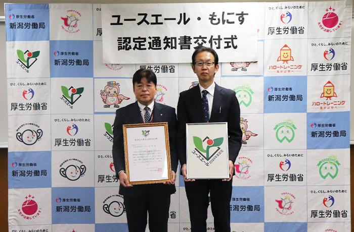 令和6年6月付で新潟労働局長より、『ユースエール企業』としての認定を取得。