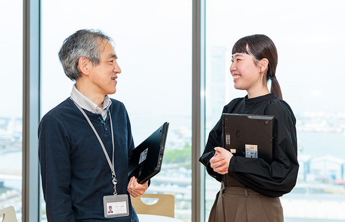 私の部署は人が少なくて、すぐ上の先輩は課長なんです。世代も経験値も差がありますが、皆さんとても物腰が柔らかく、優しく接してくれます。