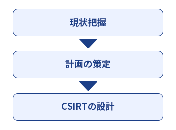 現状把握から課題を明確化し業務計画を策定、CSIRTの設計まで行うステップです。