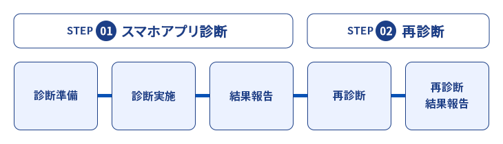 Step1スマホアプリ診断、Step2再診断の2ステップで進めていきます。